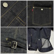 フラップポケット、フラップ裏の別生地、クローズドトップボタン、全イエローステッチ、片面タブなど、30s〜40sの仕様を追求。