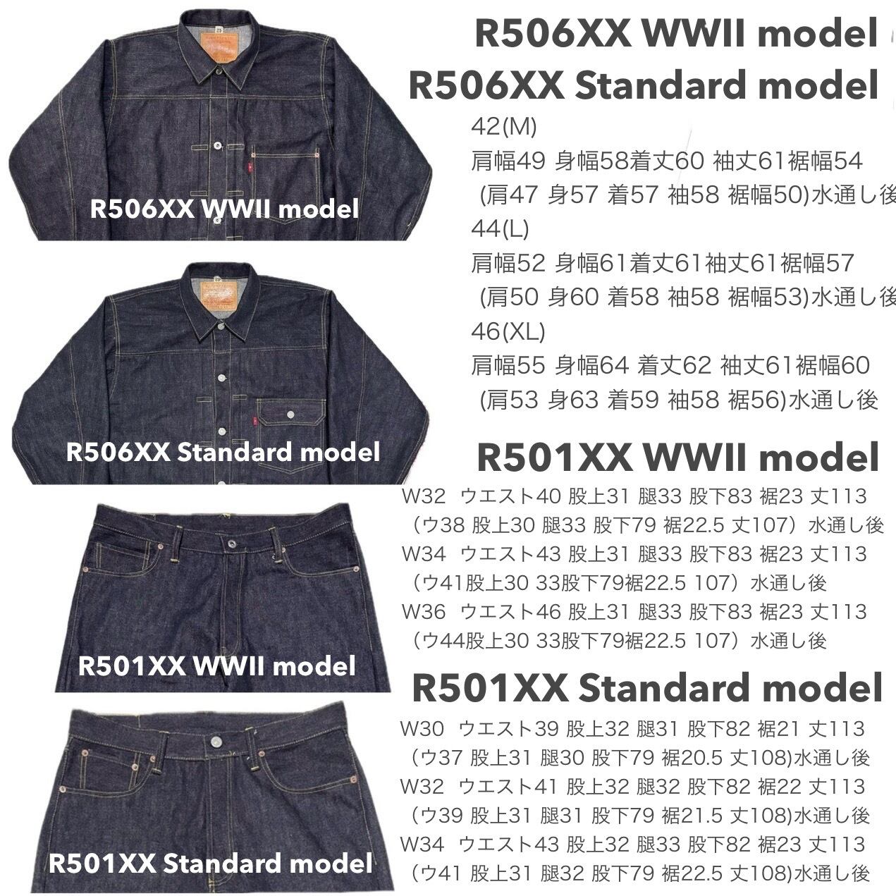 ※リジットのため水通しで全体3cm位の縮み、オンスも13.5oz位になります。