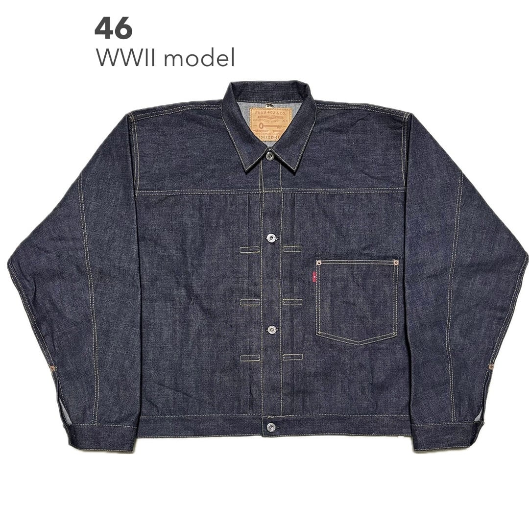 フラップなしポケット、鉄製の月桂樹ボタン、ロゴなしリベット、全イエローステッチ、片面タブなど、40s大戦モデルの仕様を追求。